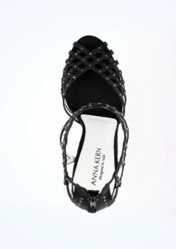 This unique latin and salsa shoe from the Anna Kern collection by Werner Kern is absolutely gorgeous! The crossover lattice vamp and ankle panels feature diamante details, and the back fastens with a secure zip. The material is black satin with soft leather lining, and the slim higher heel is ideal for a more experienced dancer.