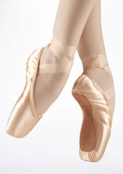 A perfect introductory shoe for dancers new to pointe work. The sides of the box are gently curved which encourage the foot in to the correct alignment. The soft shank, which is graded in strength allows the dancer to roll up onto pointe more easily.