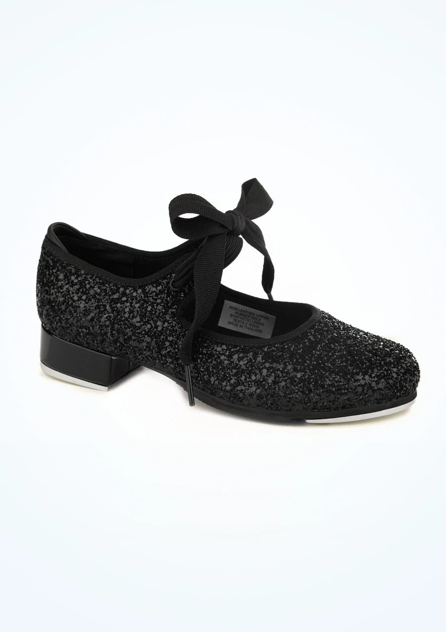 Let your tap performance sparkle with this low heel tap shoe from Bloch. Any young dancer will adore the all-over glitter upper. With a grosgrain bow fastening covering an elastic strap, this shoe provides comfort and flexibility without compromising style. The heightened leather heel cup ensures a secure fit with minimal rubbing.