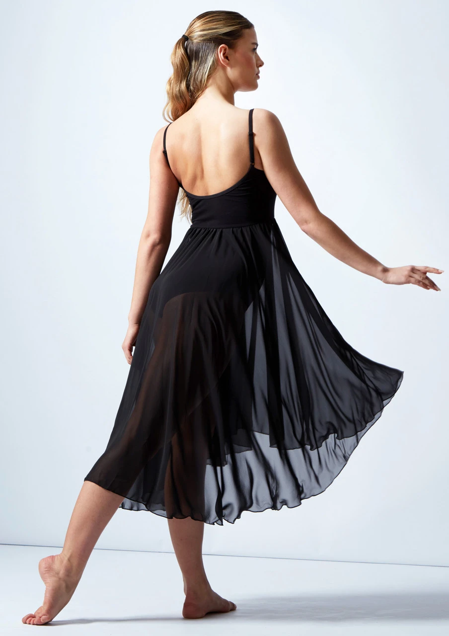 A beautiful new empire leotard dress from Capezio! The georgette material offers stunning movement and shape while dancing, and the Cotton Lycra body makes the dress secure and comfortable.