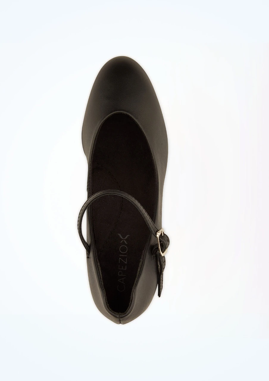 Capezio New Yorker character shoes in a 3″ heel for a stylish look as you dance. These dance shoes are suitable for use on the stage or dancefloor. Also available in tan leather.