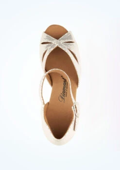 A gorgeous Latin dance shoe from Diamant made from puntino leather material with a foil overlay. The open toe sandal features a push-button fastening for fast opening and closing on the strap. This shoe is made in a medium width with an elegant 5cm flared heel. The interior lining is breathable and moisture absorbent prolonging the life of the shoe. Ultra soft padded sole for comfort.
