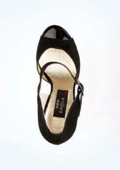 A stunning ballroom, latin and salsa shoe from the Nueva Epoca collection by Werner Kern. The open toe vamp features a full panel of suede supper and the high rise back and wide ankle strap help give this shoe more impact than usual dancesport shoes. The high patent heel is suitable for a more experienced dancer.