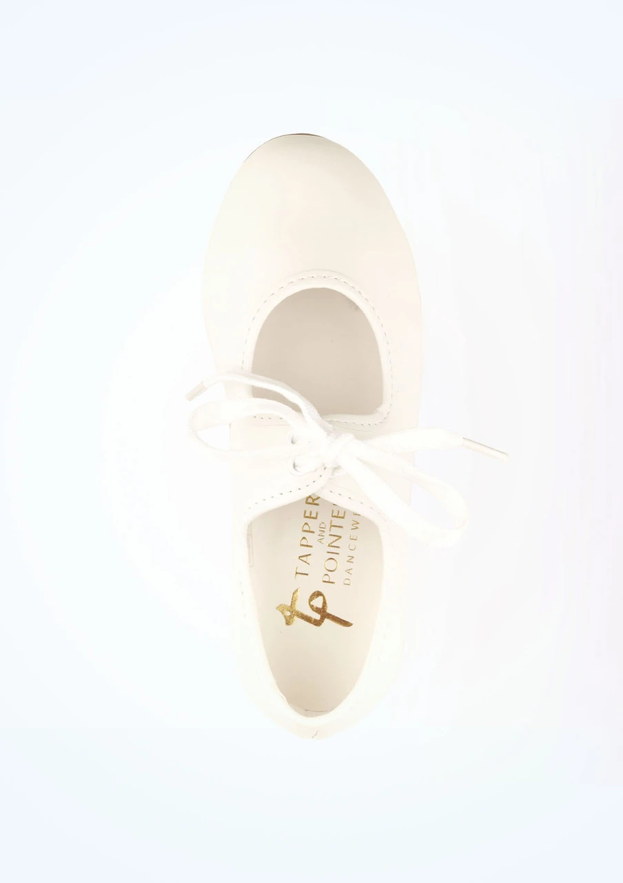 Tappers and Pointers white low 1โ heel tap shoes are great for beginners. The recently revised design now suits wider feet too. (Heel taps sold separately).