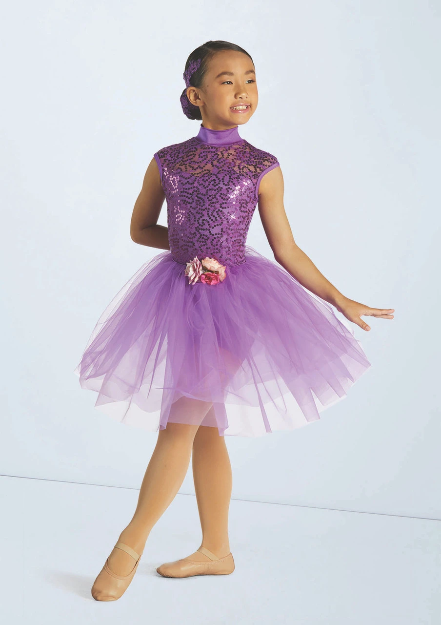 Pull-on tulle and tricot tutu with floral spray