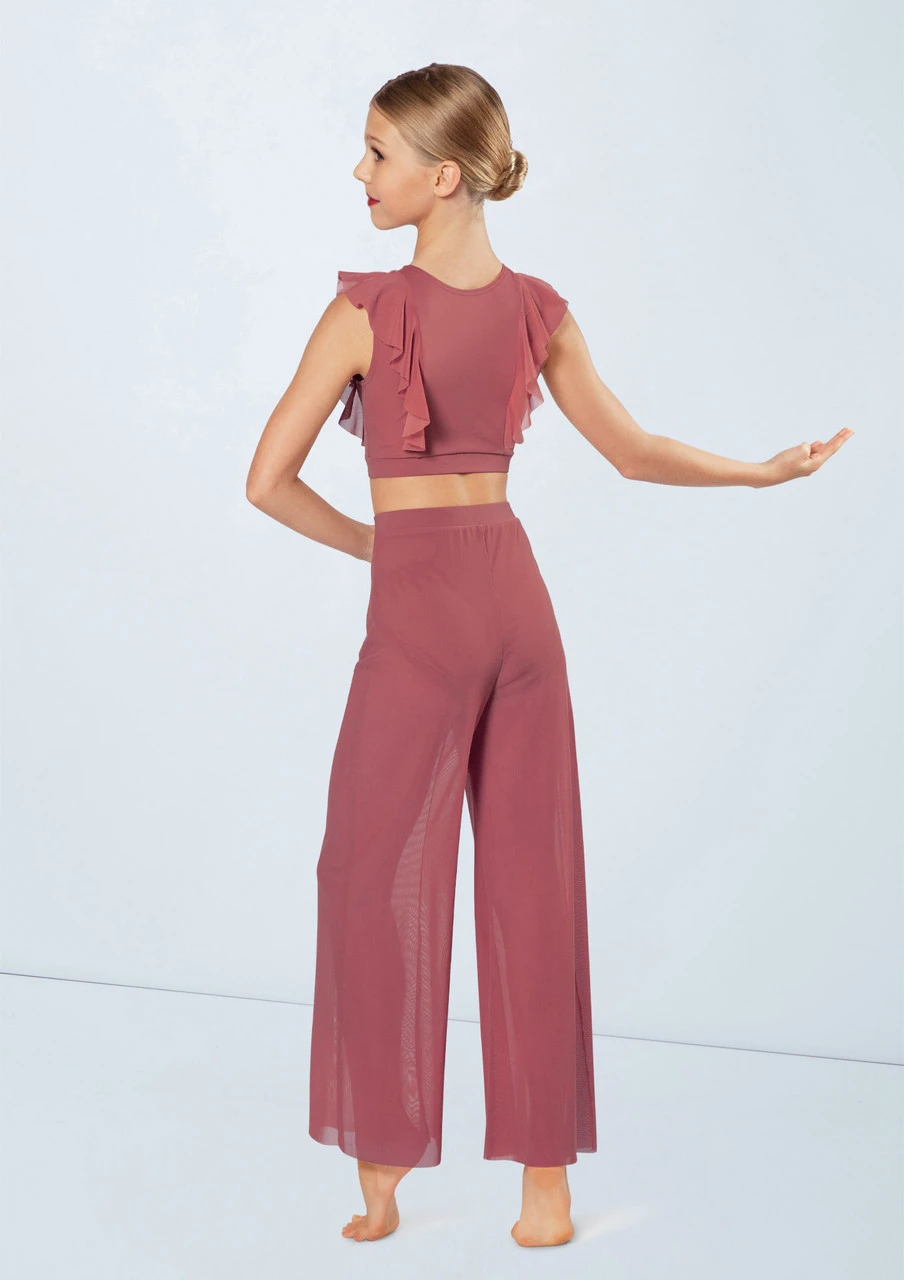-High neck crop top with power mesh ruffles