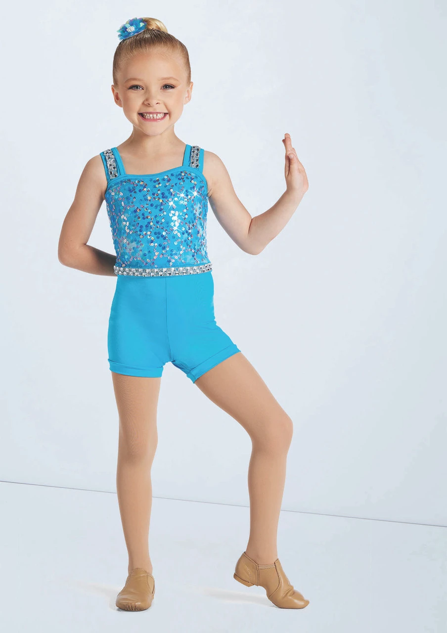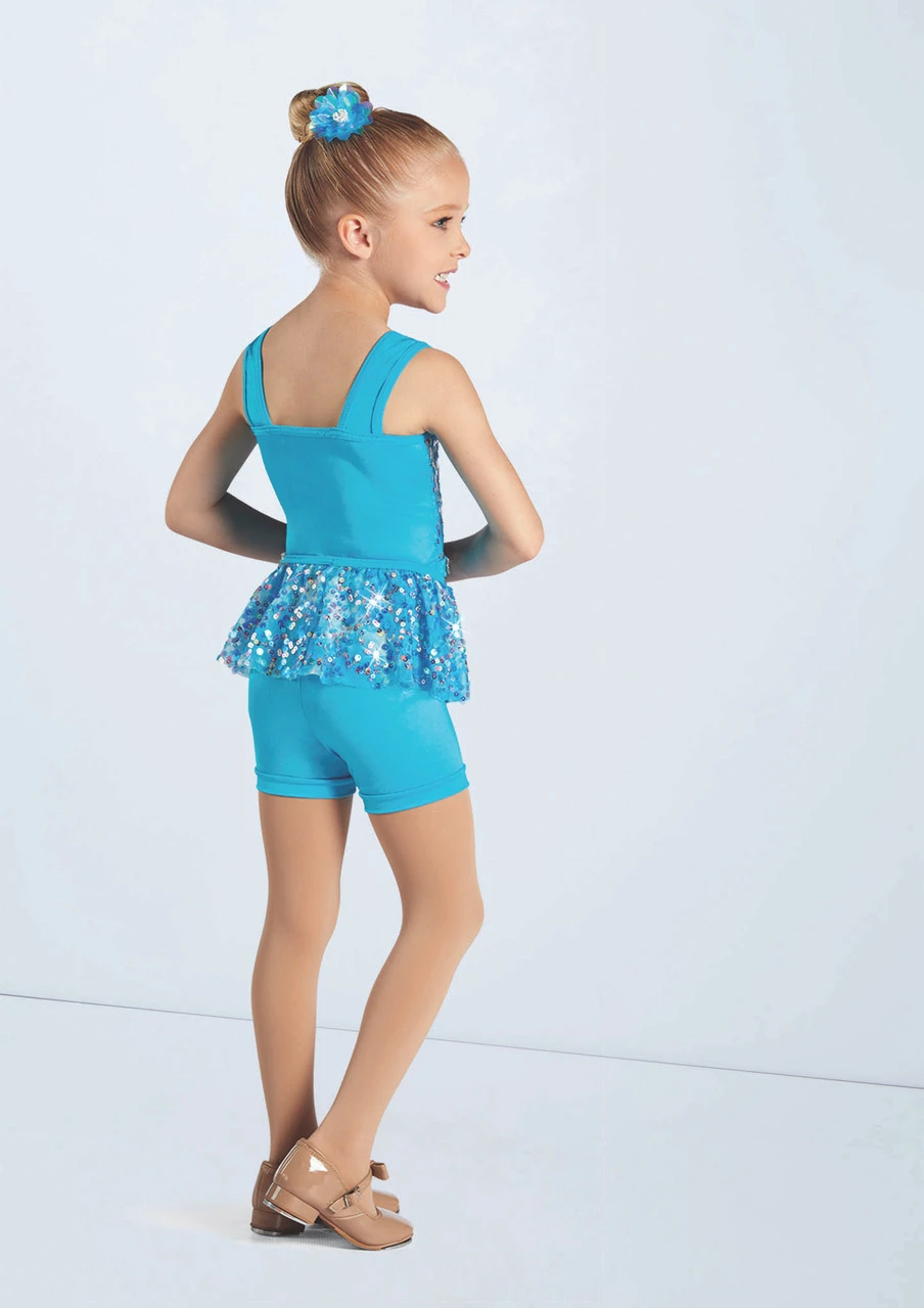 Three piece costume includes biketard, tutu and peplum skirt